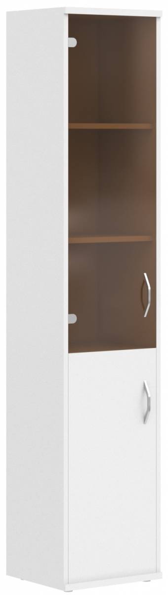 Шкаф колонка с малой глухой и стеклянной дверьми СУ-1.4(L) Белый 406*365*1975